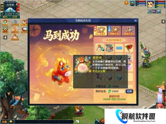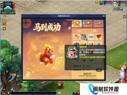 神马赐福,阖家欢乐!“典藏版马到成功礼包”、“典藏版马到成功礼包(可交易)”与“马到成功礼包”将于2026年1月27日12:00在全部服务器开启售卖,届时玩家可点击主界面左上角礼包入口或前往宝象国(33,25)马到成功使者处购买。