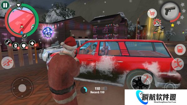 1、这是一款扮演圣诞老人自由犯罪的手机游戏,在开始之前可以为自己的圣诞老人配好装备