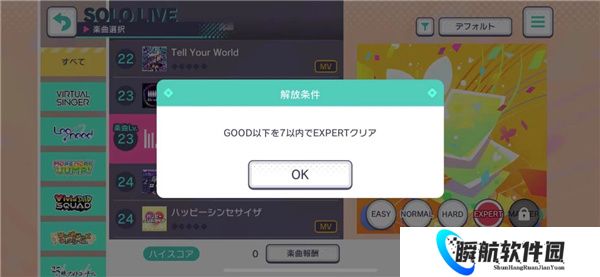 这5个难度模式前4个都是可以直接选择的,一开始第5个噩梦模式是处于锁定状态的。它需要玩家完成指定的任务才能开启,在专家模式内该歌曲的good次数少于7次,只有满足了这个条件,噩梦级别的难度模式才能让玩家参与,不然它会一直处于锁定状态的。