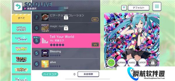 从「EASY」到「MASTER」共有5个难度等级可供自由选择。无论你是喜欢初音未来的音游新手,还是想挑战自我极限的音游达人,都一定能收获满满。