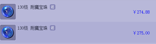130附魔宝珠市场售价275,相当于你去一次足浴店,或者一顿两人的海底捞。