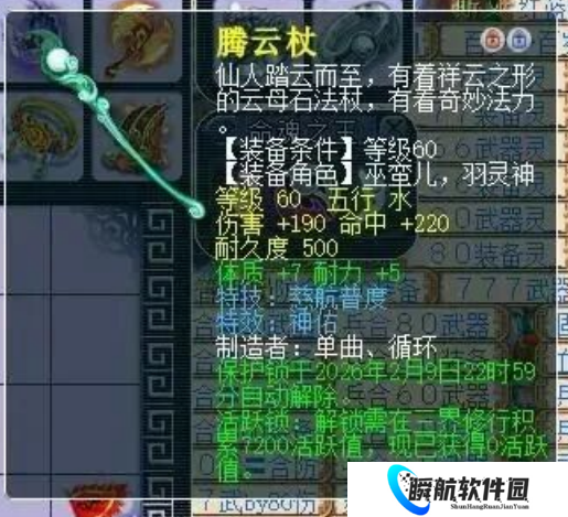 玩家鉴定出一把60级武器,伤害190、命中220,附带神佑和慈航普度双特效,看来只能由69级的女儿村使用了。