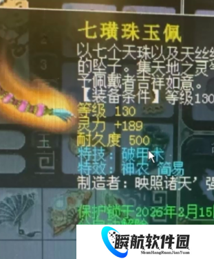 130级简易项链,初灵189,特技破甲,特效神农,三蓝字属性——玩家成功鉴定出这件129化生寺的毕业装备。