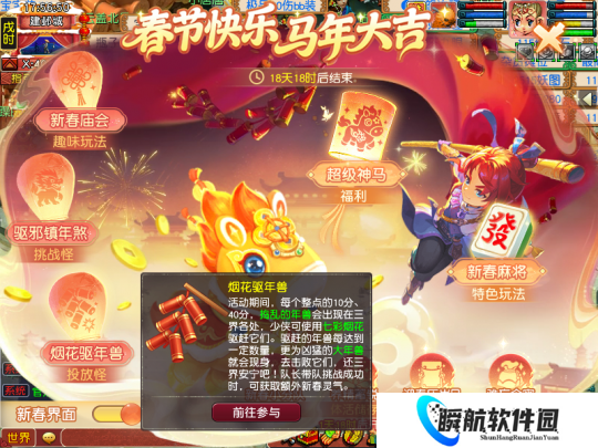 春节自然少不了驱赶年兽,这个类似于整点投放怪,时间在整点的10分和40分,【捣乱的年兽】会随机出现在各个场景。