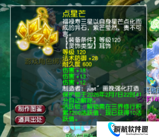 玩家鉴定出一件120级耳饰,主属性为28点法防,下排附带三条伤害属性。