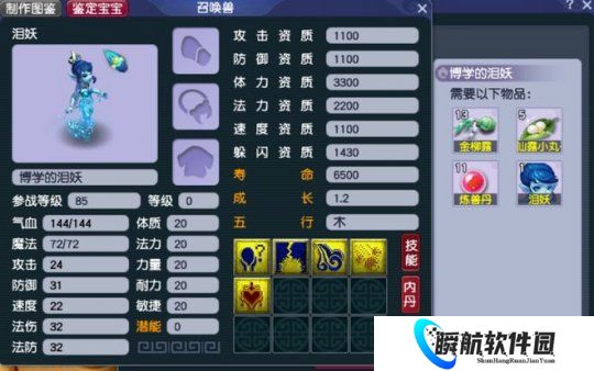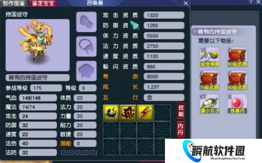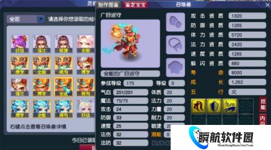 完成绘卷任务后,咱们可以得到领取任务时展示的召唤兽作为奖励(各项资质、成长以及技能都是固定的)。