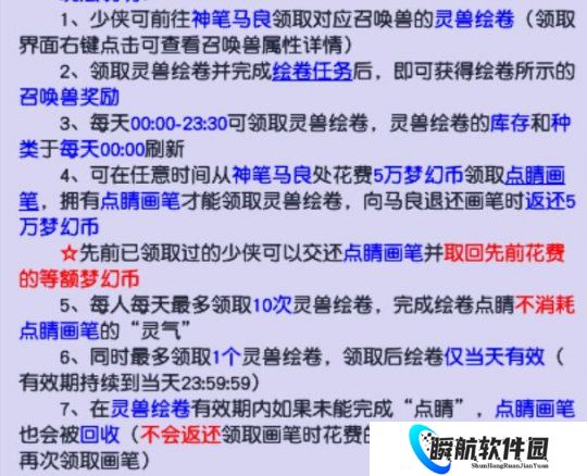 温馨提示:领取灵兽绘卷任务时需携带点睛画笔,咱们可花费50000两金钱找神笔马良购买。另外,归还点睛画笔时神笔马良会退回50000两金钱,但72小时内无法再次领取。