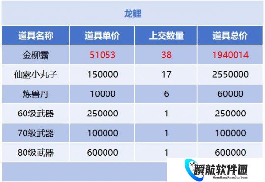 小帅所在服务器的4技能龙鲤价值约为5500000两金钱,大约需要38个金柳露、1个60级武器、1个70级武器、1个80级武器、17个仙露小丸子和6个炼兽丹。