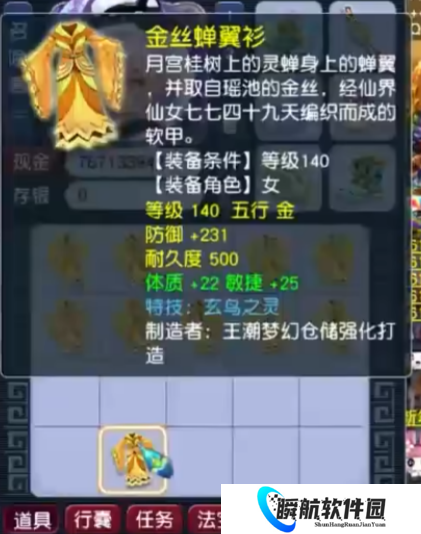 231防御,体敏双加140级玄鸟之灵女衣以及140级玉清诀女头,这两件装备都是极品。