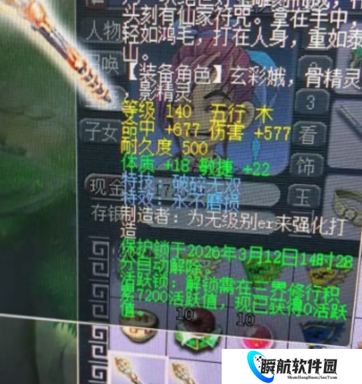 一位玩家鉴定出了一把140级永不磨损、破碎无双棒子,命中677、伤害577,体敏双加。