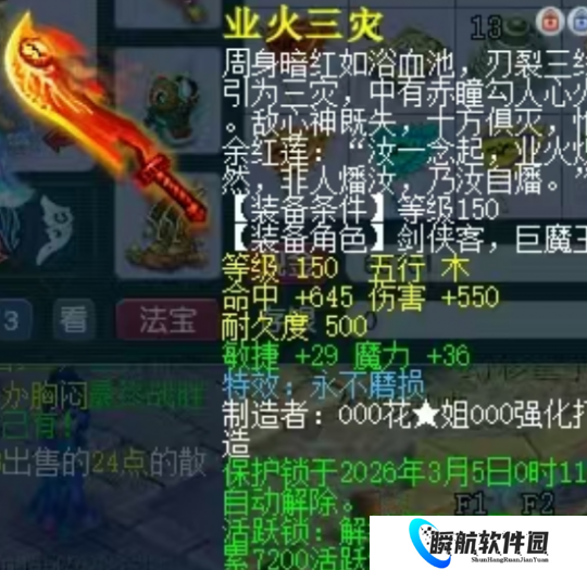 一位郊区少侠鉴定出了一把150级敏魔双加的永不磨损刀。