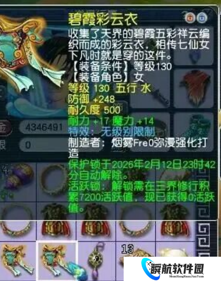 玩家鉴定出了一件130级无级别女衣,防御248,附加耐力与魔力双加属性。