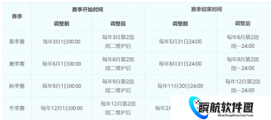 1.赛季时间与玩法时间调整: