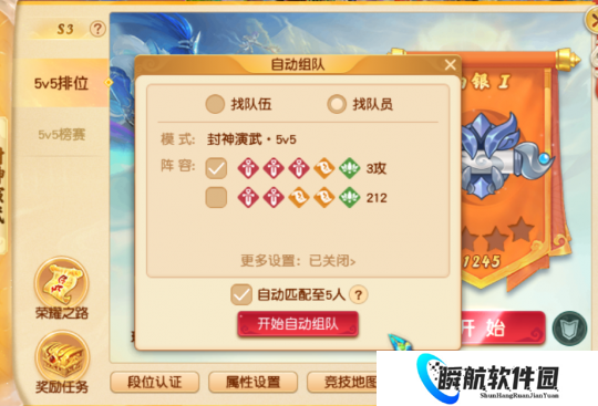 2.“邀请队友”界面中,可邀请列表将优先显示与玩家队伍等级、段位相近的候选玩家;