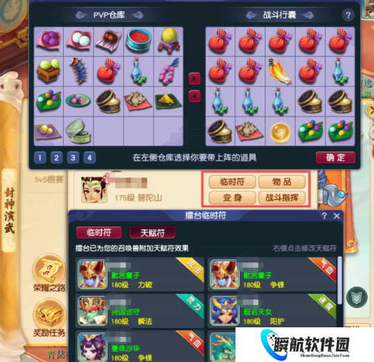 8.为方便玩家调整角色及召唤兽属性,“战前配置”界面新增“临时符”按钮,玩家点击可开启“擂台临时符”界面,调整擂台附加临时符与天赋符的“临时属性效果”;