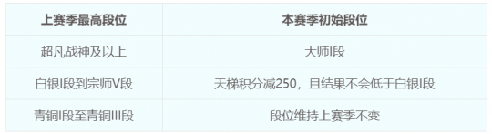 “封神演武·第二赛季”初始段位将基于第一赛季结束时段位按规则衰减,段位衰减规则如下: