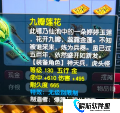 畅玩服玩家鉴定出一把130级无级别锤子,命中610,伤害495,打上15锻玛瑙总伤823,属于X9一线武器!