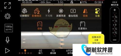 1、打开ProMovie安卓app之后,我们可以看到一个非常简洁干净的页面,基本上你们能看到的所有内容就是软件中的所有的内容啦!我们如果想要切换摄像头的话,点击左边的【设置图案】,这个时候我们就可以看到一个【切换镜头】,点击之后我们可以看到直接显示【自拍】,我们就点击【自拍】就可以了。