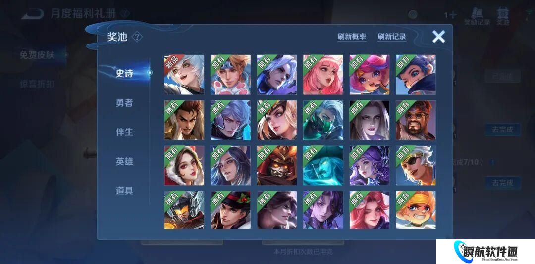 至于怎么减少未拥有皮肤,可以通过碎片兑换或者参加免费皮肤活动来获取,比如星夜王子、缤纷独角兽这些皮肤都有碎片兑换的途径,很容易就能到手。