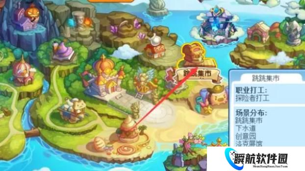 2、然后打开世界地图,找到跳跳集市,如下图所示: