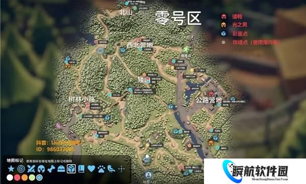 可以看到零号区的光之男刷新位置,一个在左上角,另一个在公路旁。