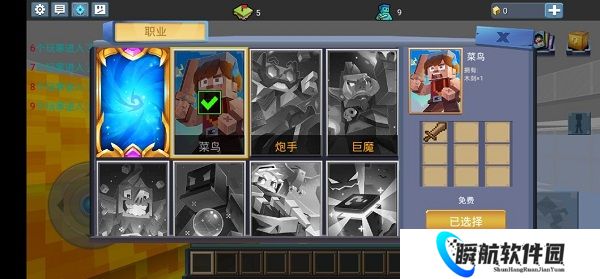 进入游戏后,我们可以对自身的职业进行选择,不同职业拥有的道具是不一样的,刚开始我们只能选择菜鸟职业,其他职业需要解锁才能使用。