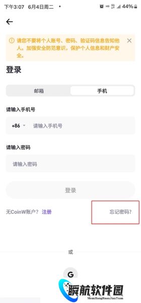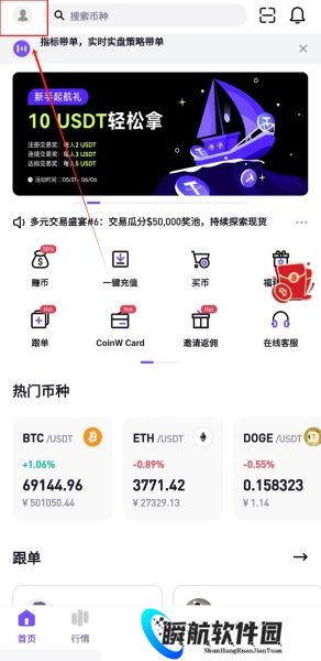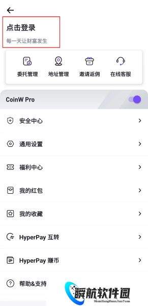 1、打开CoinWAPP,点击左上角账户图标进入安全中心,点击上方登录按钮。