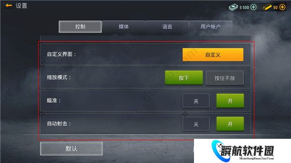 4、在“设置”-“控制”中可以对界面、缩放模式、瞄准、射击等进行设置;