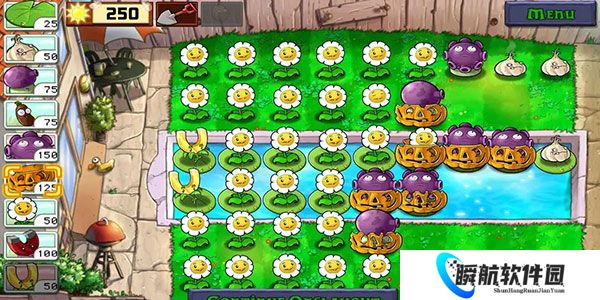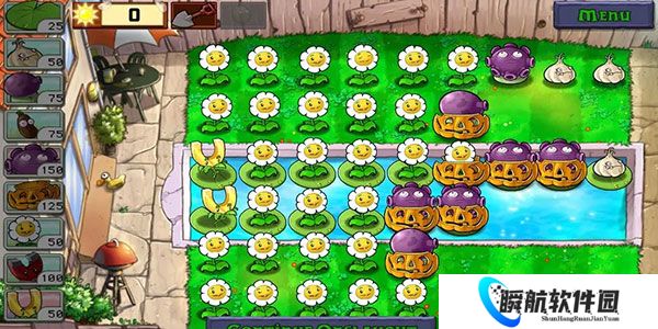 3、过了第2波后,可以使用剩余的阳光换上新的蒜头,把烂的南瓜头换新的。如下图。