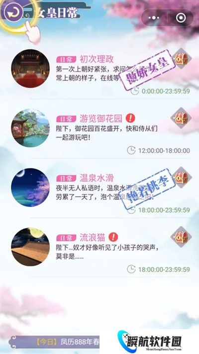 5、的日常:初次理政、游览御花园、温泉水滑、流浪猫,日常中体现出了女皇每天要多很多事情,也非常的忙碌。