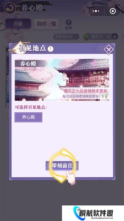 3、任务提示点击屏幕上的“养心殿”,然后点击“即刻前往”便可以直接进入养心殿了;