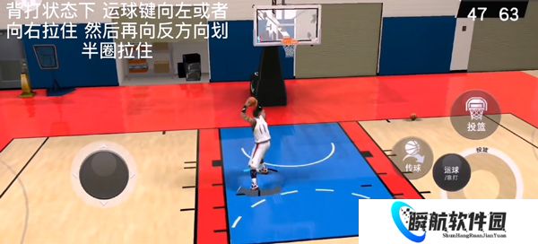 5、梦幻舞步,背打状态下,运球键向左或者向右拉住,然后再向反方向划半圈拉住。