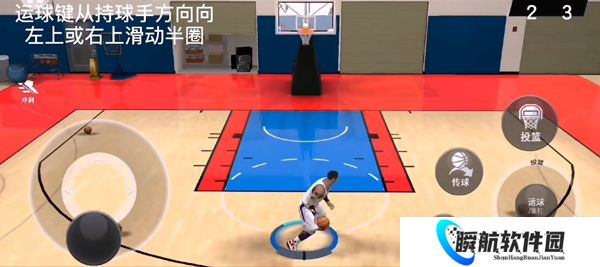 7、半转身,运球键从持球手方向向左上或右上滑动半圈。