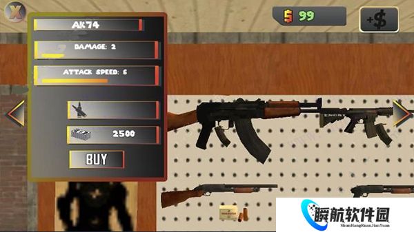 6、每种武器我们可以看到名称、伤害、攻击速度,子弹,价格,比如说AK74需要2500美金。