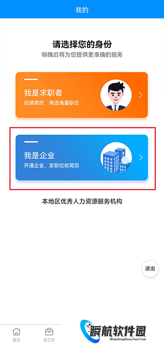 1、软件进入首页,完成注册登录后,选择我的企业身份。